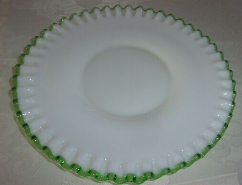 Title (ebay affiliate link): Vintage Fenton Emerald Crest White Milk Glass Ruffled Footed Plate 10 1/4" MINT