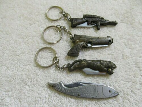 Lot 4 Novelty Mini Vintage Pocket Pen Knife Key Chains Fish Tiger Rifle Pistol