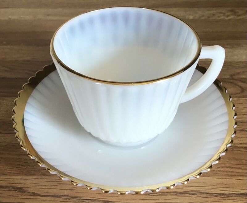 Title (ebay affiliate link): 1930s MacBeth-Evans Monax Petalware Glass Cup & Saucer Thick Gold Rim Trim
