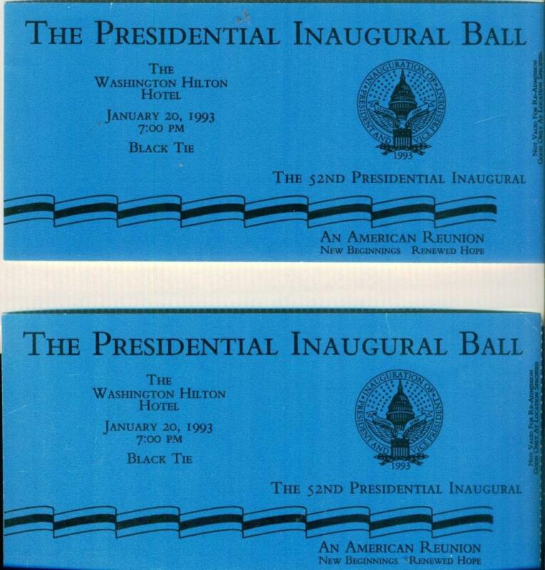 Title (ebay affiliate link): Two 1993 Presidential Inaugural Ball Tickets & Program - President Clinton