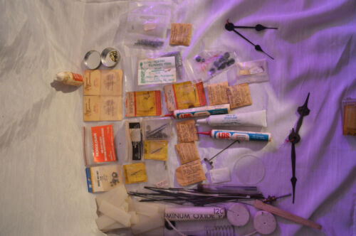 Title (ebay affiliate link): Huge Lot Of Antique Vintage Clock Watch Makers Parts Screws Gears Pins Tool Meta