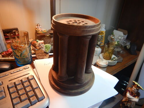 Old walnut wood 9 inch tall round holder columns really odd item old estate