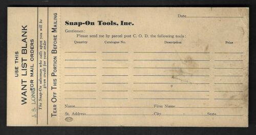 Title (ebay affiliate link): 1930''s Snap-On Tools,Inc. Mail Order Business Reply Card