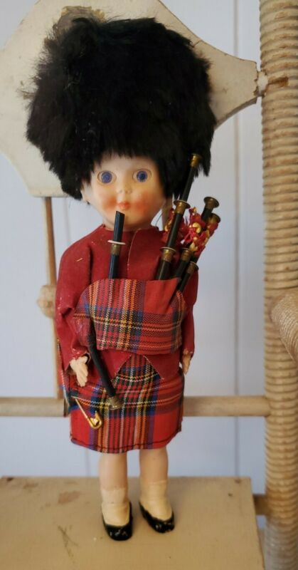 Vintage Doll Hard Plastic 6" Original Scottish costume with Bagpipes