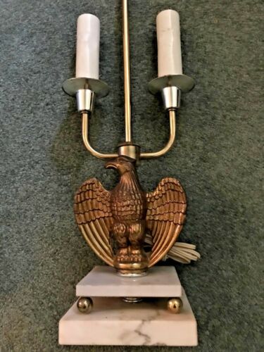 Vintage 2 Arm Brass Eagle on Double Marble Base Lamp