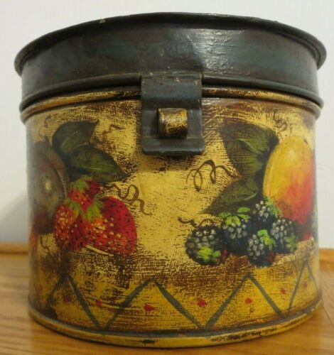 Vtg Robert Berger Signed Toleware Painted Fruit Design lidded Tin Pail 6" Dia.