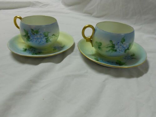 VINTAGE BAVARIA 2 TEA CUPS AND SAUCERS WITH GOLD TRIM HAND PAINTED
