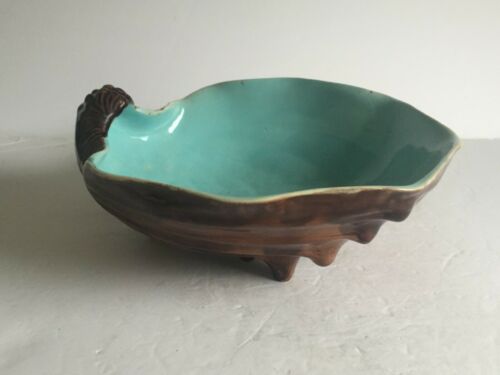 Title (ebay affiliate link): Large Antique Majolica Art Pottery Footed Shell Form VBowl Brown Turquoise
