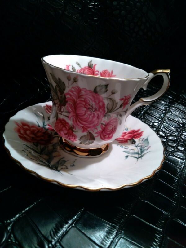 Title (ebay affiliate link): Queen Anne Tea Cup & Saucer #286 Gold Trim, pink flowers Bone China England