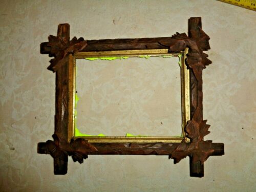 Antique Adirondack Wood Tramp Art Leaf Carved Picture Frame 9x11 5x7 Small