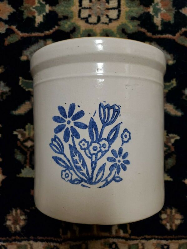 Vintage Stoneware Pottery Crock Blue Flowers 1 Gallon Country Farmhouse Pot USA