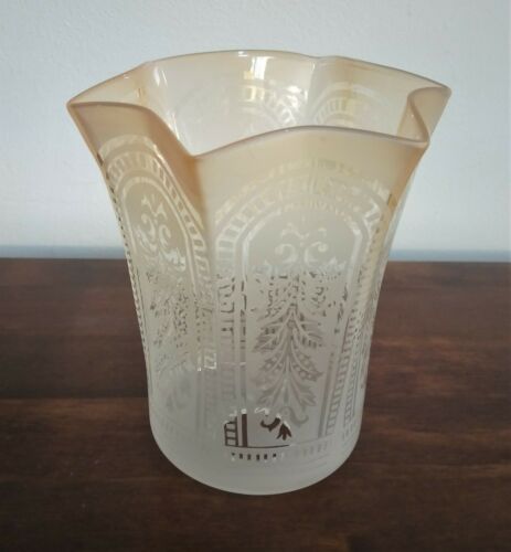 Very nice small Frosted Transfer Etched and Smoked Glass Lamp Shade.