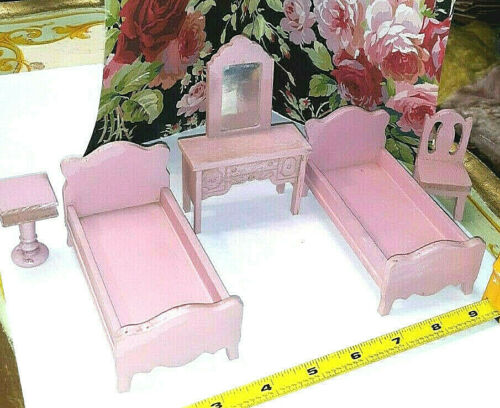 Title (ebay affiliate link): VINTAGE PINK PAINTED WOODEN STROMBECKER BEDS BEDROOM DOLLHOUSE FURNITURE SET LOT