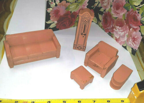 Title (ebay affiliate link): VINTAGE PEACH PAINTED WOODEN STROMBECKER DOLLHOUSE LIVING ROOM FURNITURE SET LOT