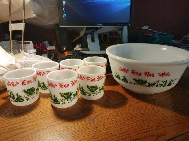 Title (ebay affiliate link): Vintage Tom & Jerry Egg Nog Punch Bowl Set Hazel Atlas Milk Glass 6 Cups