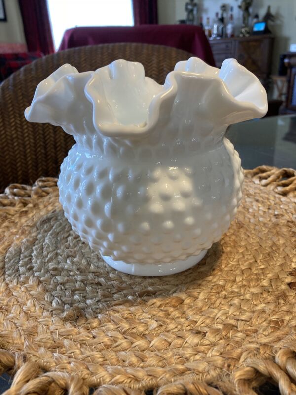 Title (ebay affiliate link): Vintage Fenton Glass White Ruffled Hobnail Milk Glass Vase 5.5"