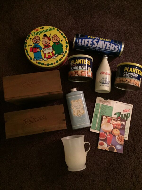 Title (ebay affiliate link): Lot of 19 Tins Wooden Taco Bell Koolaid Planters Avon Old Spice Chipmunks