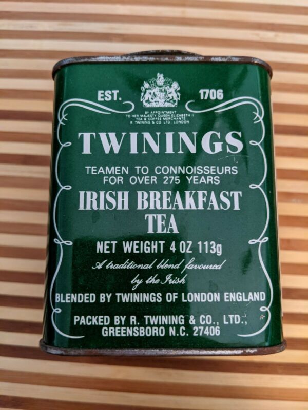 Title (ebay affiliate link): Twinings Irish Breakfast Tea Tin Vintage 4 oz tin. Greensboro NC