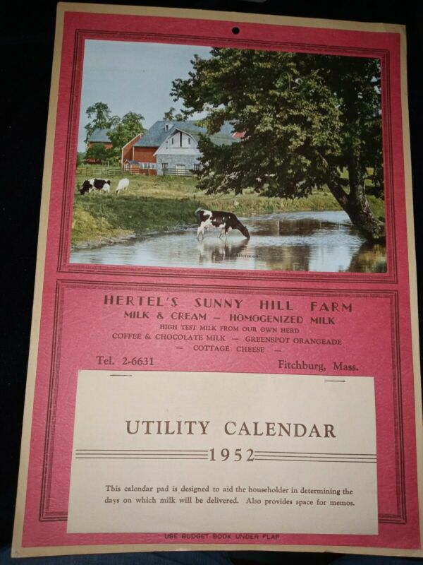 Title (ebay affiliate link): 1952 Advertising Calendar Hertels sunny hill farm Fitchburg Massachusetts unused