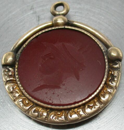 Antique 10K GOLD-FILLED Victorian Era JASPER Intaglio Soldier Cameo FOB Pendant
