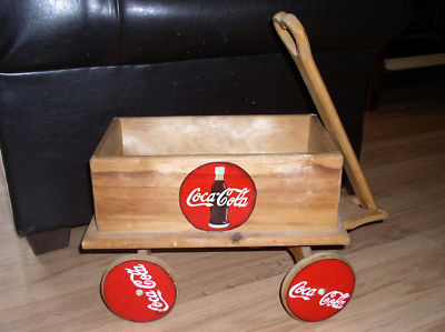 Title (ebay affiliate link): Vtg. Coca Cola WOODEN WAGON CART 16" Decor Collectible