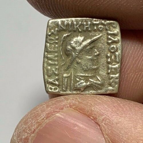 Title (ebay affiliate link): ANCIENT INDO - GREEK SILVER COIN DRACHM UNDEFINED 14mm