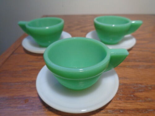 Title (ebay affiliate link): 3 JADITE AKRO AGATE CONCENTRIC CIRCLES CUPS & WHITE SAUCERS