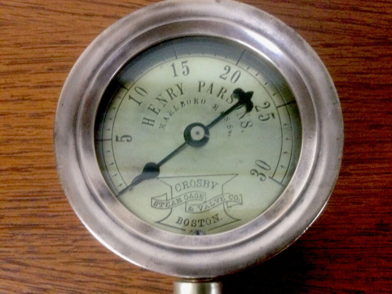 Title (ebay affiliate link): Antique Crosby Steam Gauge, Henry Parsons, Marlboro Mass. (Nice!)