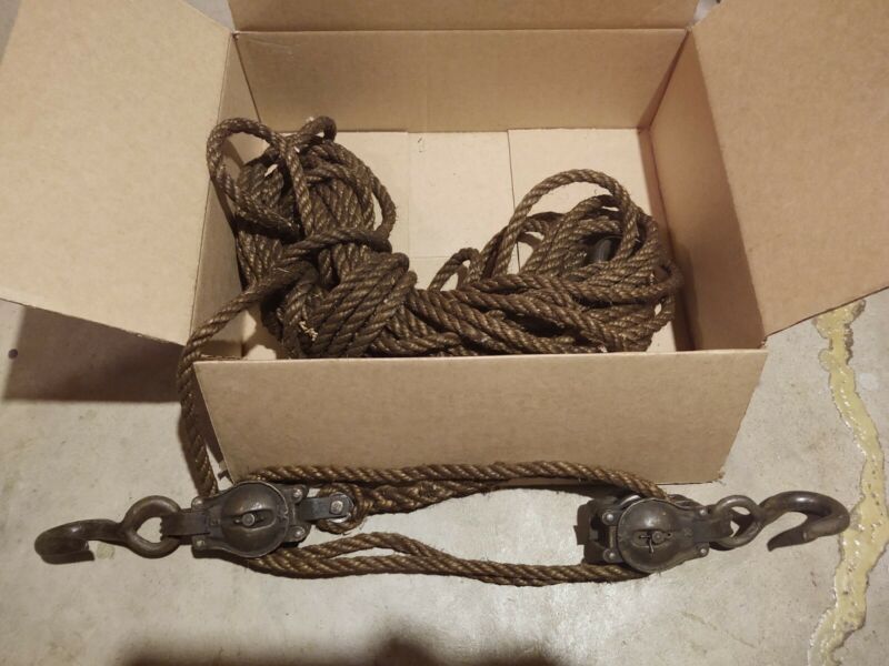 Title (ebay affiliate link): Vintage Pulley Rope System - Double Block and Tackle Hoist Barn Homestead Tools
