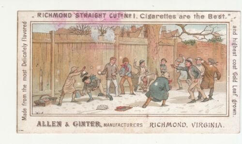Title (ebay affiliate link): Allen & Ginter Tobacco Richmond VA Cigarettes Snowball Fight Vict Card c1880s