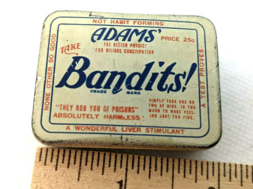 Title (ebay affiliate link): Vintage Adams Bandits! Liver Stimulant tin Adas Laboratories Arcade Los Angeles