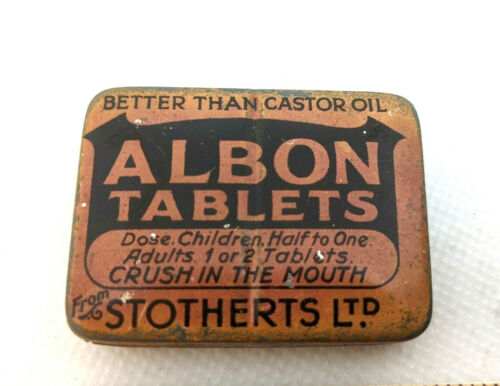 Title (ebay affiliate link): Vintage Medicine Tin Albon Tablets Stotherts Ltd Atherton Better than Castor Oil