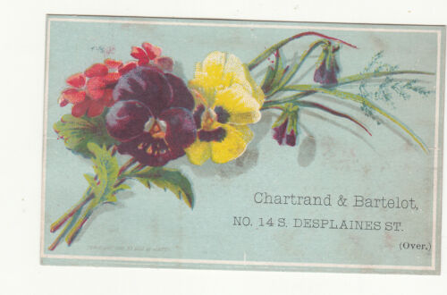 Chartrand & Bartelot Saloon & Billiard Hall Wine Cigars Pansies Vict Card c1880s