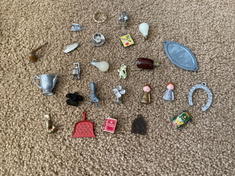 Title (ebay affiliate link): Vintage Cracker Jack Gumball Charm Prizes Some Tin Marked Moving Parts