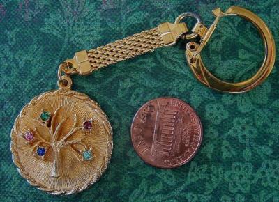 Vintage 1950's Tree Charm w Rhinestones Keychain