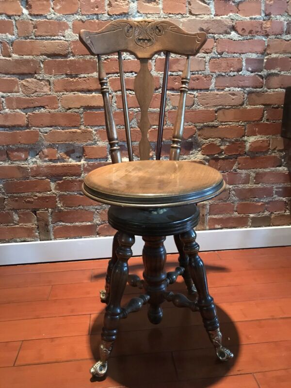 Antique Swivel Seat Vanity Chair with Ball Claw Feet - Seat Reattachment Needed