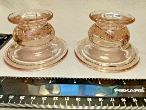 Vintage Pair Pink Depression Glass Candlesticks Candle Holders 2 1/4"H Madrid