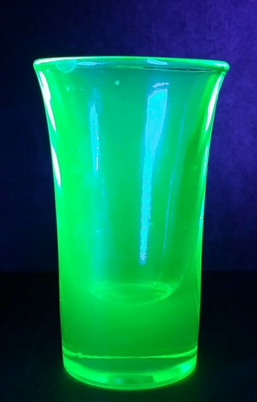 DEPRESSION (?) GLASS GREEN SHOT GLASS URANIUM / VASELINE GLASS (?) GLOWS