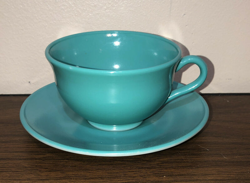 Depression Glass Hazel Atlas Ovide Platonite Turquoise Cup And Saucer