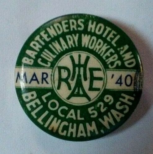 Title (ebay affiliate link): 1940 Bartenders Hotel & Culinary Workers, Bellingham, WA Pinback Button B25