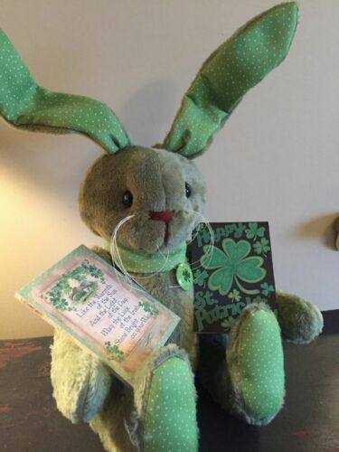 Title (ebay affiliate link): PRIMITIVE RAGGEDY HAPPY ST. PATRICK''S DAY SITTING BUNNY RABBIT DOLL