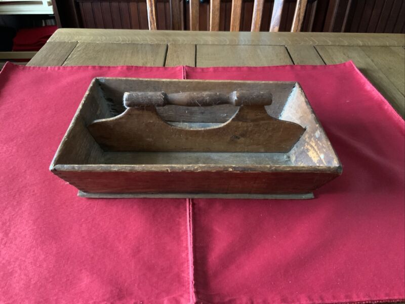 Antique Wooden Primitive Silverware Caddy Flatware Dovetail Farmhouse Wood Tray
