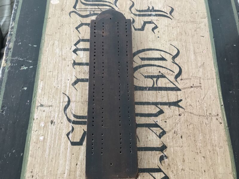 Awesome Antique 18th Century Carved Walnut Tombstone Cribbage Board NO RESERVE
