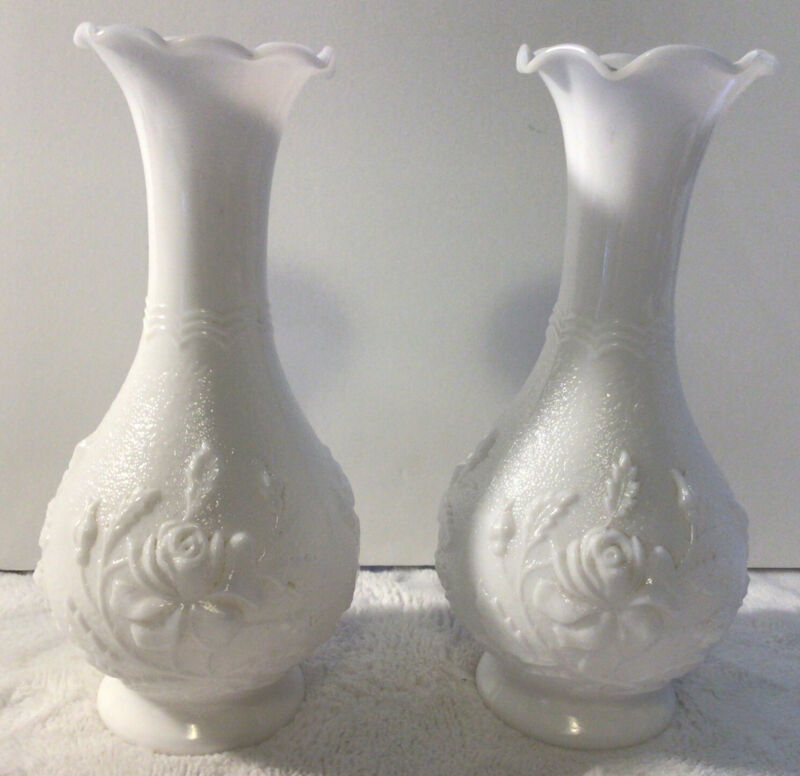 Pair Of Milk Glass Bud Vases Roses