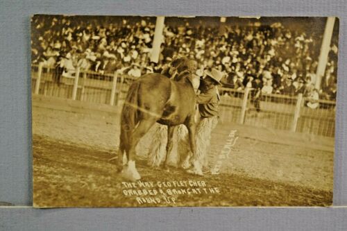 Title (ebay affiliate link): RPPC Real Photo At the Round UP Geo. Fletcher Grabbed a Bronc Photo by Allen.