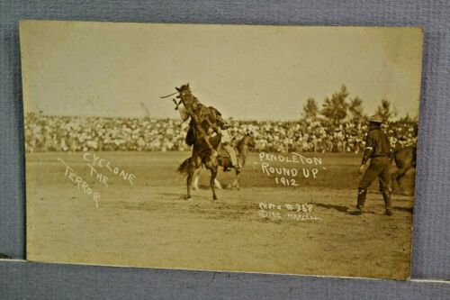 Title (ebay affiliate link): RPPC Real Photo Pendleton Round Up 1912 Cyclone the Terror Marcell Photo .