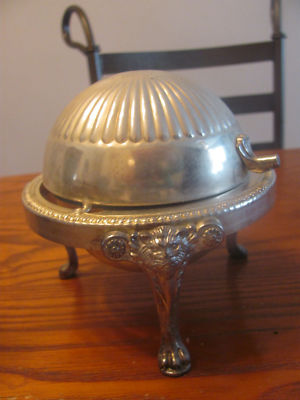 ANTIQUE SILVER PLATED FOOTED BUTTER DISH