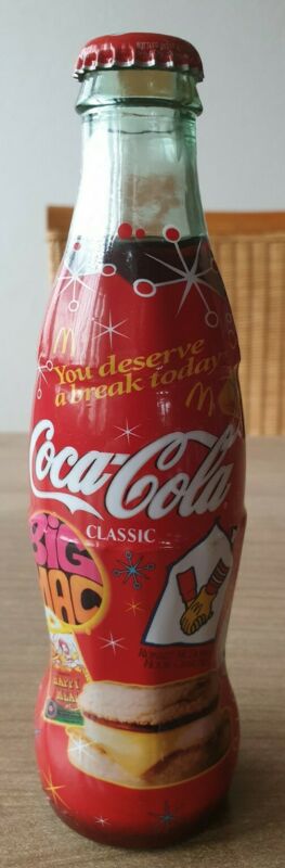Title (ebay affiliate link): Nice Coca Cola wrapped glass bottle from USA. mc donalds anniversary. Full bottl