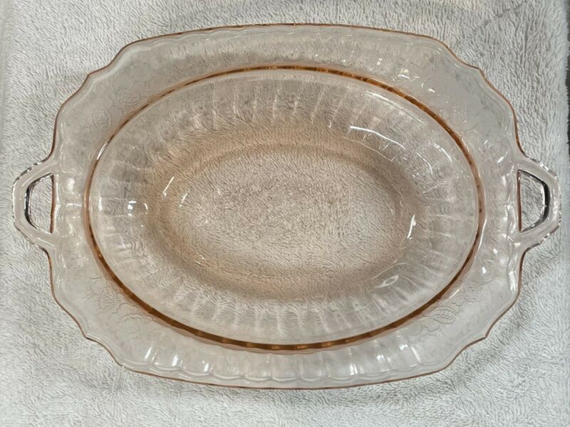 Anchor Hocking 1930s Mayfair Pink Open Rose Oval Serving Bowl Depression Glass