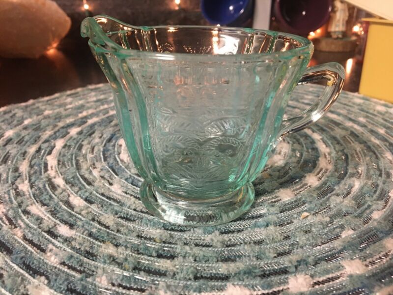 Vintage Federal Glass Company Madrid Aqua Blue Depression Glass Footed Creamer